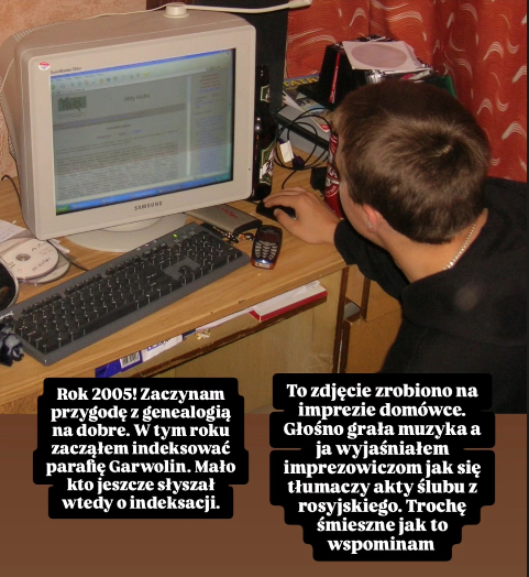 Zacząłem się zajmować genealogią około 2005 roku nie mając praktycznie żadnej wiedzy o przodkach. Wtedy też zacząłem zajmować się indeksacją ksiąg metrykalnych. Od tego momentu minęło już ponad 20 lat! Dzisiaj już wiem wszystko o czym wtedy genealogicznie marzyłem.